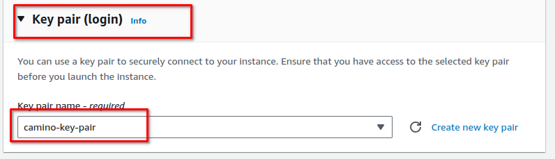During the EC2 instance creation, you'll select the instance type, operating system, and other configurations to suit your Camino Node requirements. We'll also associate the previously created Key Pair and Security Group to ensure secure access and communication.
