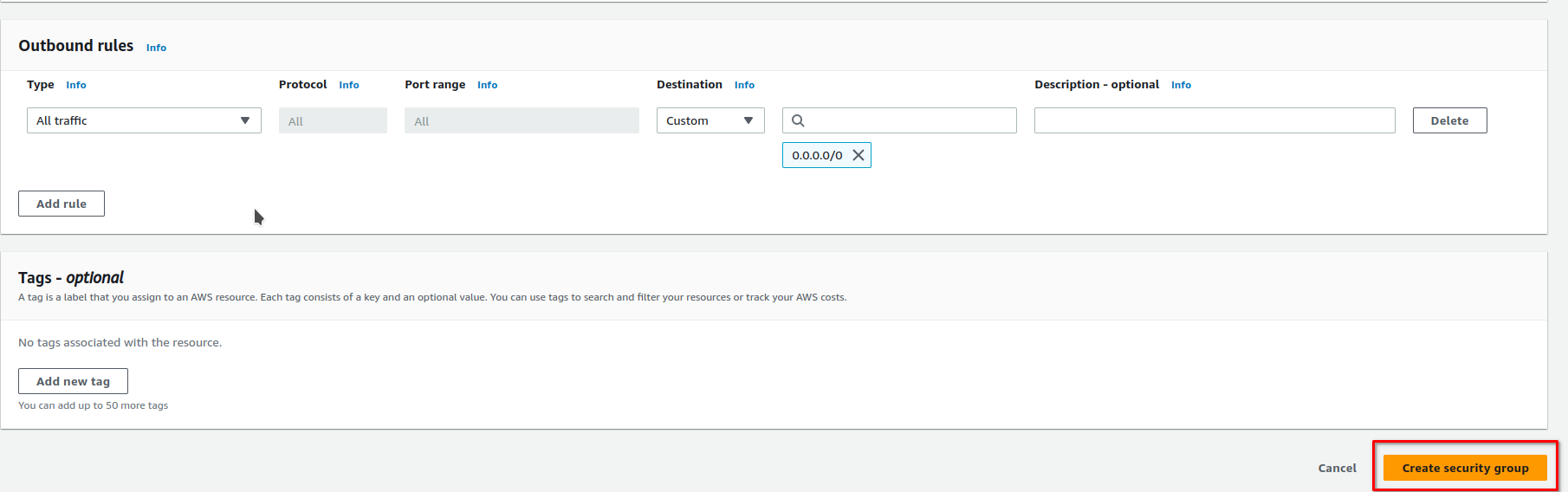 - IP Range: Your IP Range (to allow HTTP port access from your IP Range)