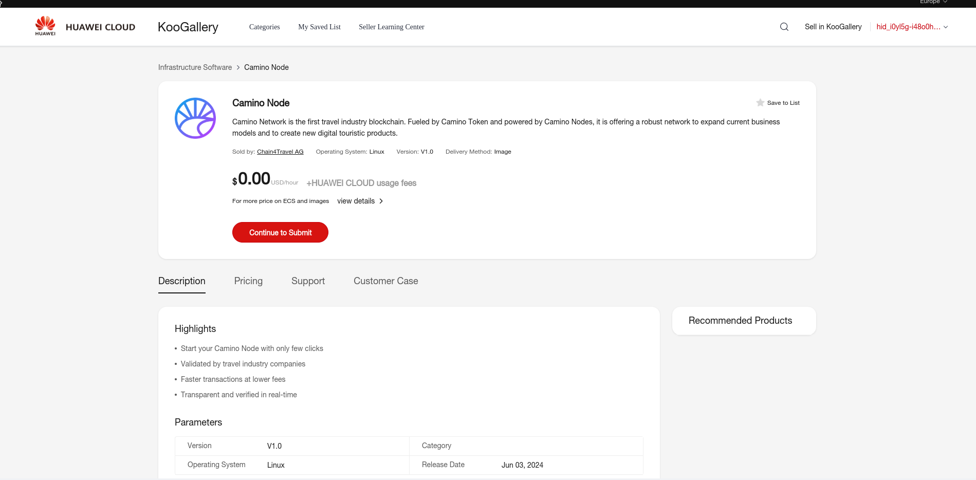 In this guide, we will walk you through the process of setting up Camino Node on Huawei Cloud KooGallery platform.
