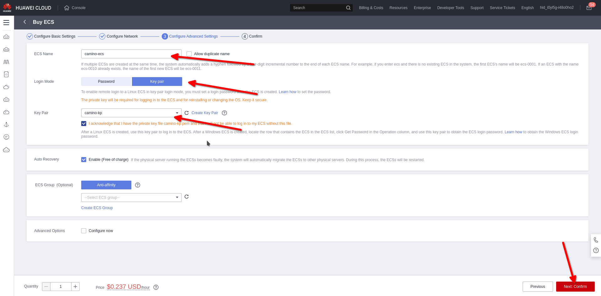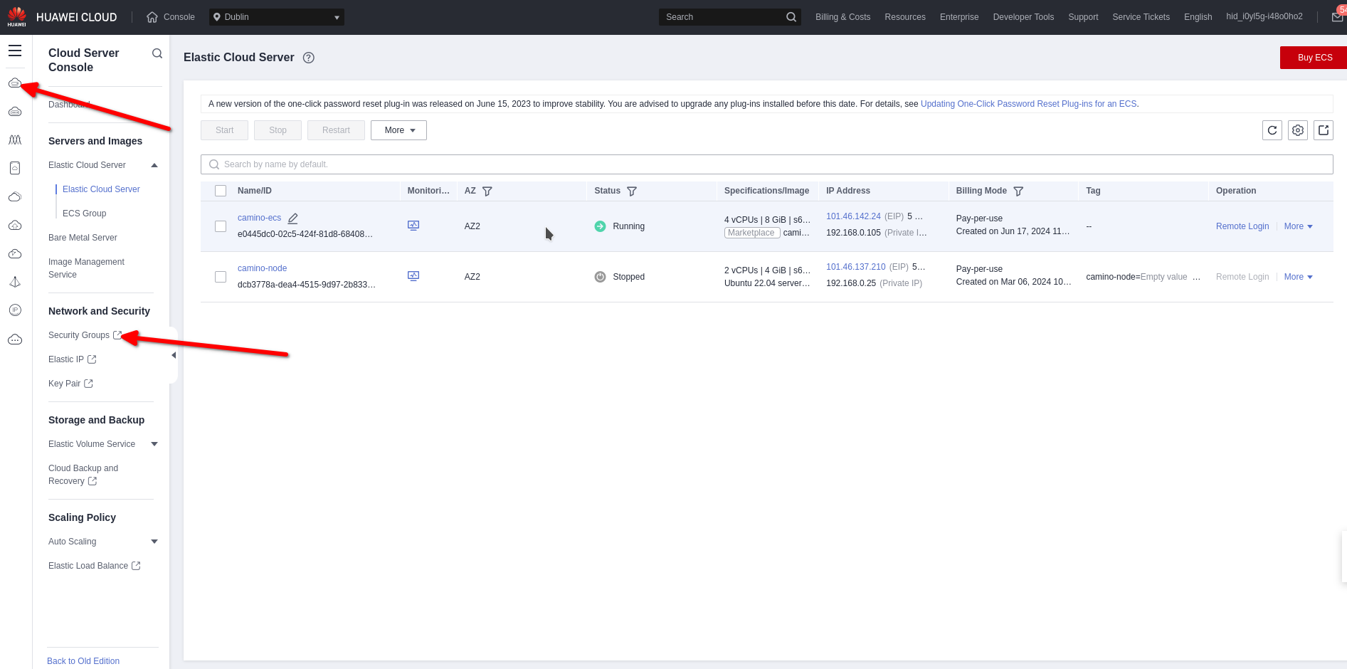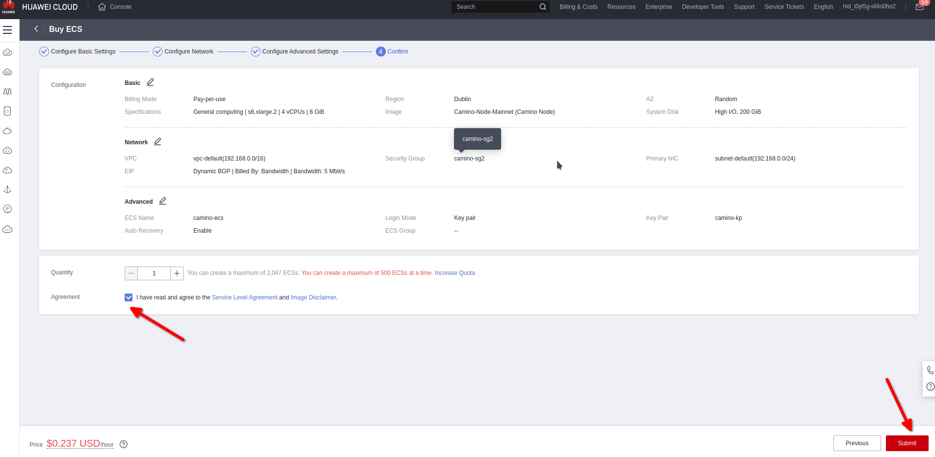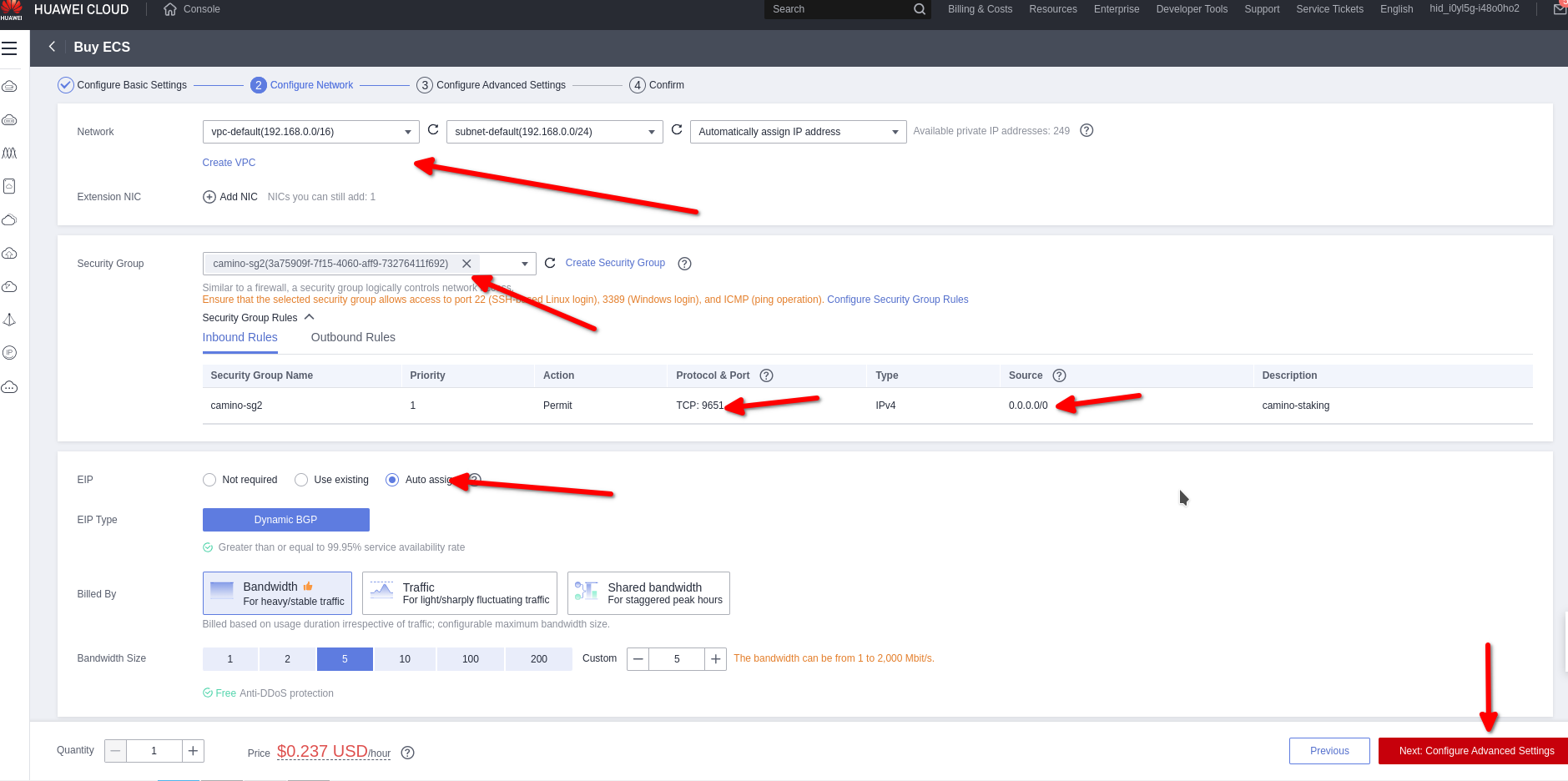 Let's proceed with creating the ECS instance and get your Camino Node machine up and running on Huawei Cloud.