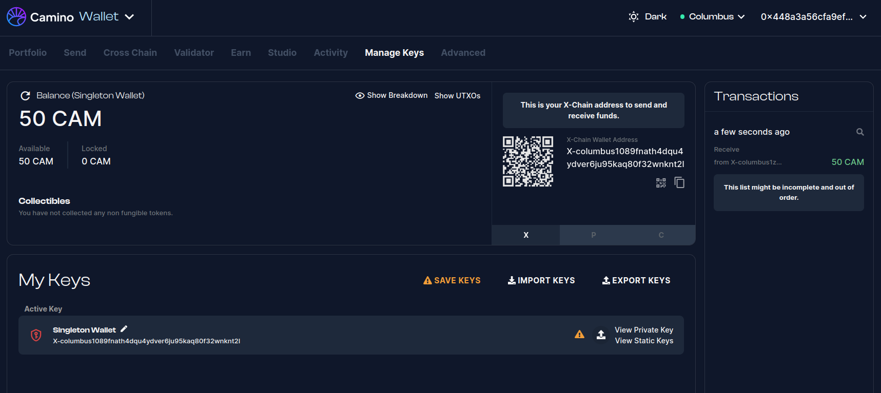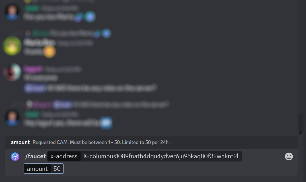- Funds in C-Chain Address: Ensure that you have CAM tokens in your C-Chain address. You can acquire some tokens through the faucet on the Discord channel.