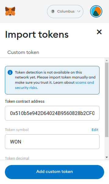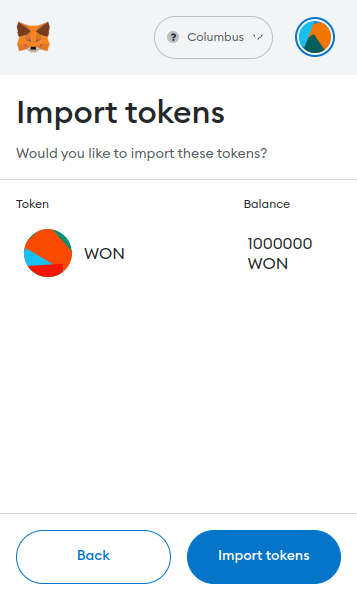 5. Add Your Account and the Columbus Network to the MetaMask Wallet