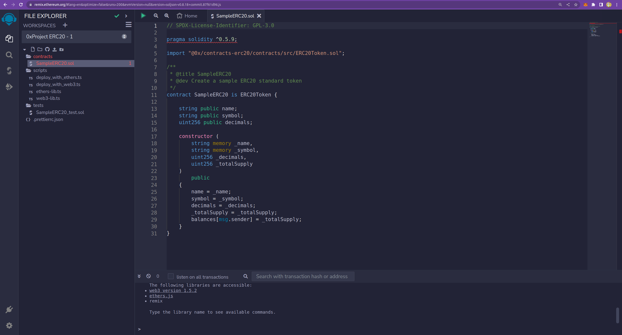 - Access the Remix IDE & Import a sample ERC20 contract.