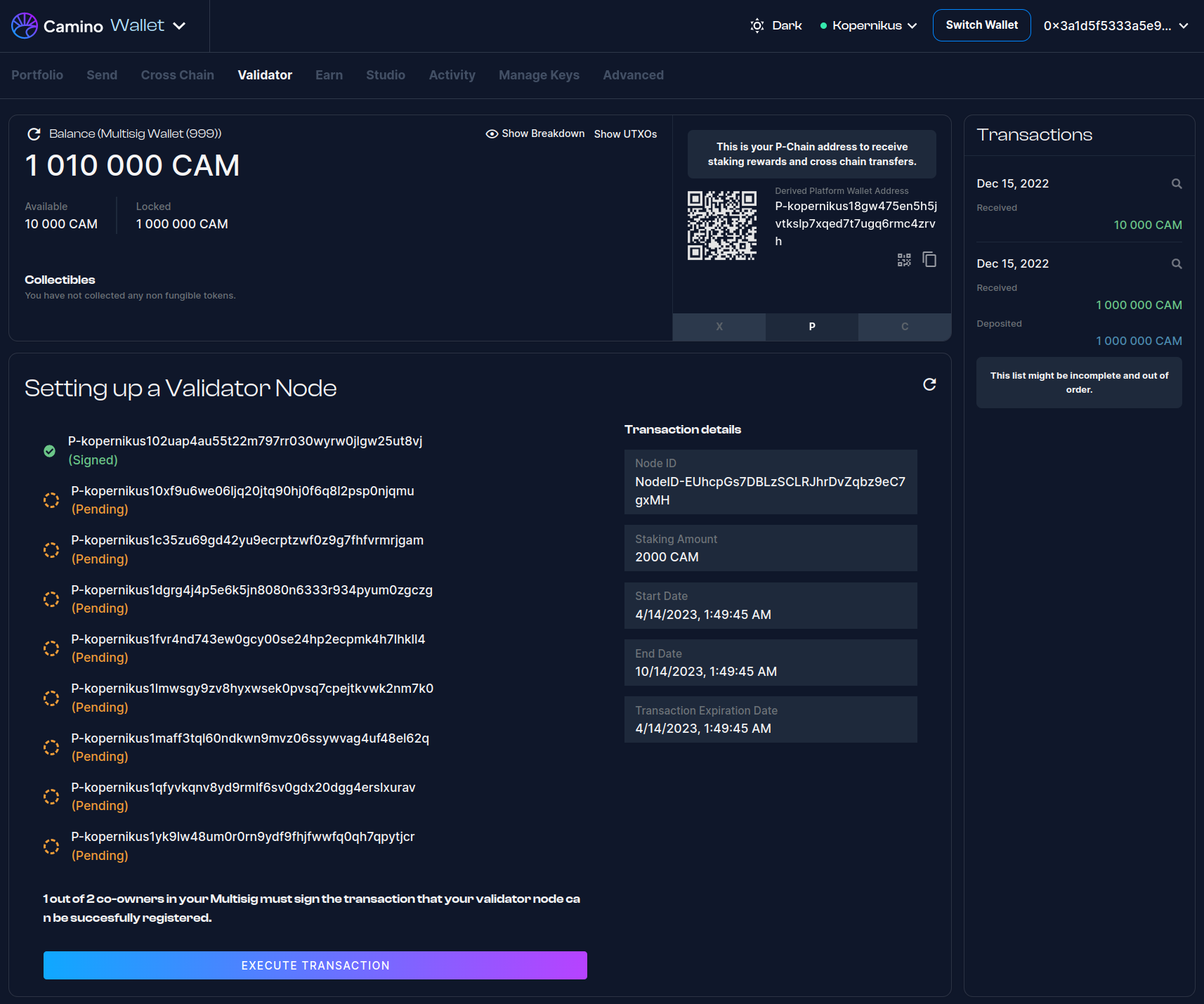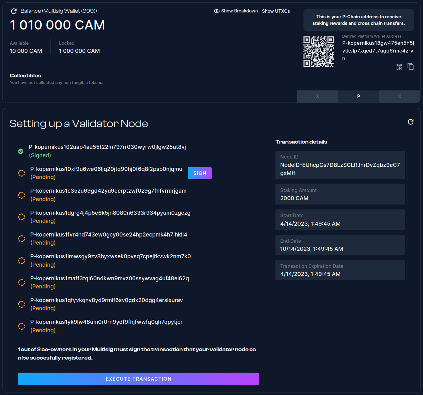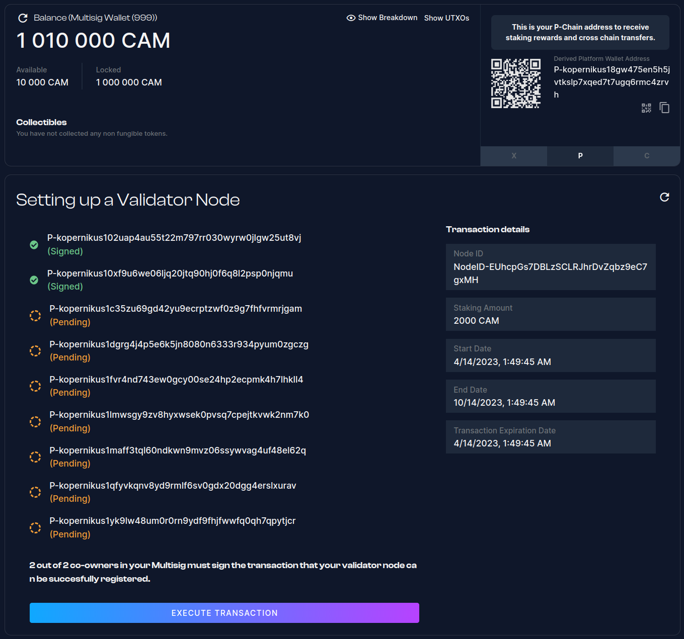 The sections below are intended for multisig wallets. If you have a singleton wallet, you can directly execute the transaction.