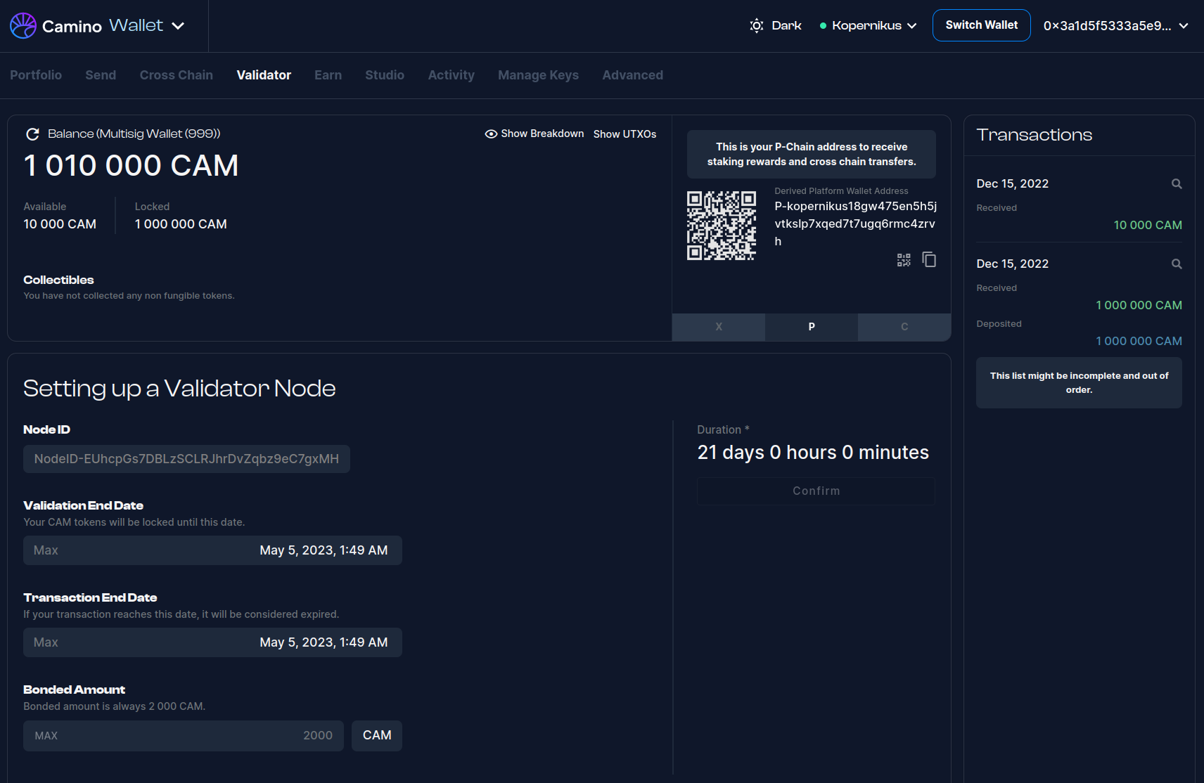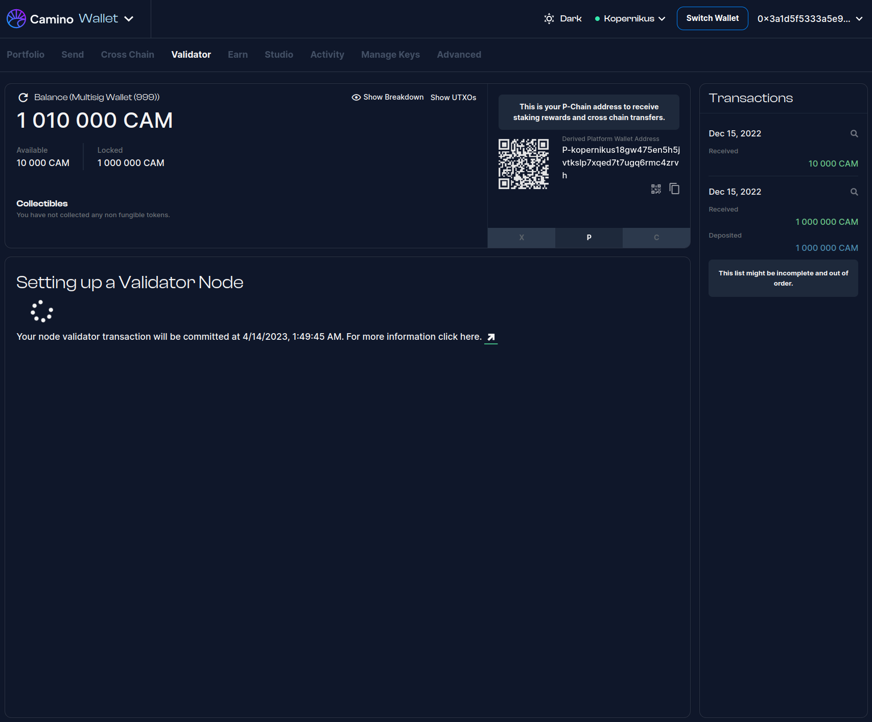 Navigate to the 'Validator' section in the Camino Wallet, where you will find the "Setting up a Validator Node" section.