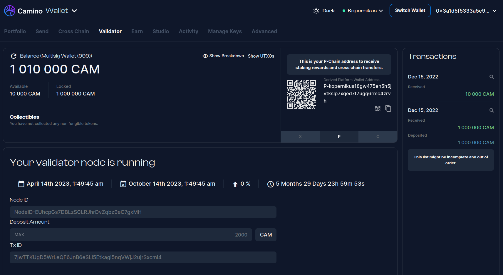 You may refer to this documentation for more information on how to check the status of your validator node using the Camino Explorer.