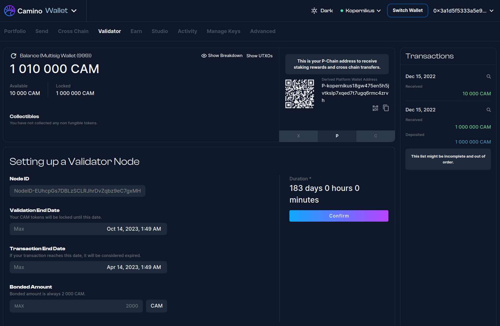 Please note that the "Confirm" button under the duration is currently disabled. This is because the validation end date must be at least 6 months in the future. Therefore, you will need to update this date accordingly.