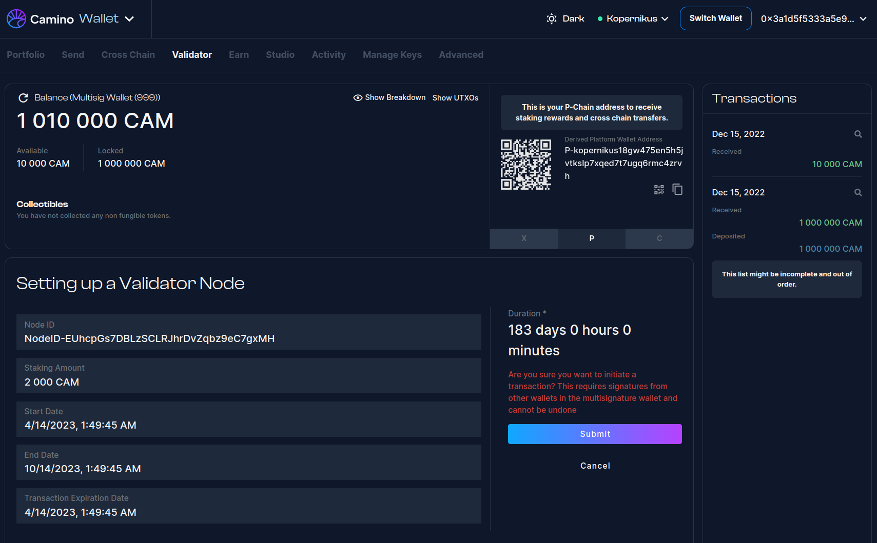 Afterward, you will be shown a summary of the transaction along with a warning that the action cannot be undone. Review the details carefully, and if you are satisfied, click the Submit button to proceed.